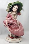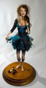‘Heiress’ 13″ high, made on 2011, material paper clay, painted with oil paint, costume made of silk taffeta, silk embroidery, Japanese beads, swarovski crystals, swarovski pearls.